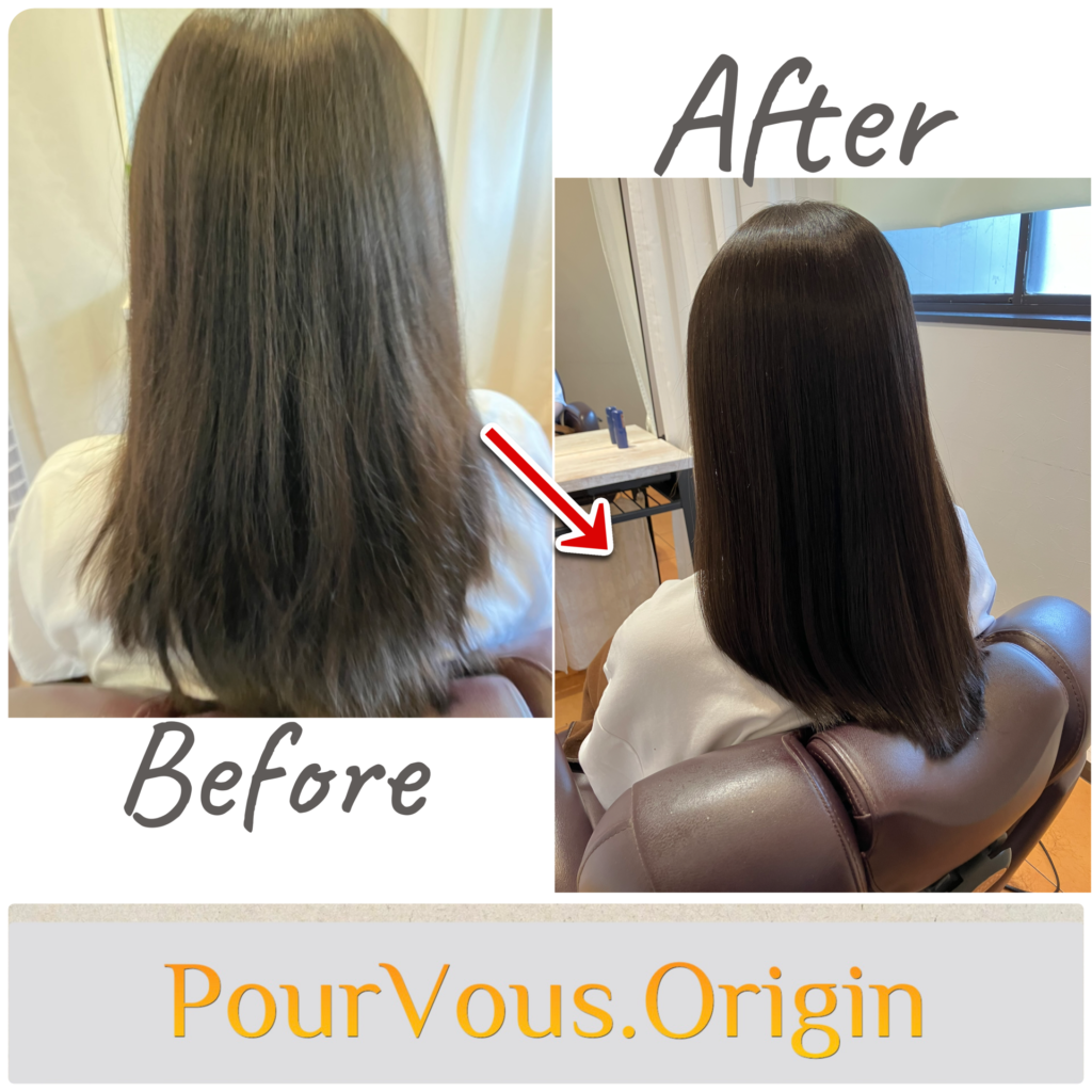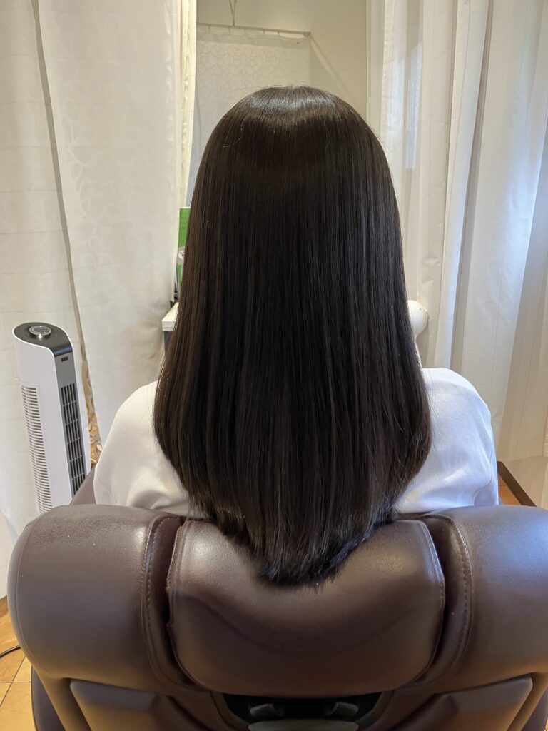 数回かけていく中で、少しずつ状態が安定し、現在は2ヶ月に1回の縮毛矯正でも、ダメージをほとんど感じさせない、まとまりのあるツヤ髪に仕上がるように✨