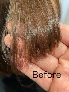 実は、このN様は初回に来店された際は他店で縮毛矯正にデジタルパーマで失敗し、毛先半分以上がジリジリのテロテロのビビり毛になってしまった過去をお持ちです。