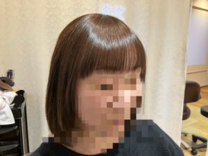 毛先カット+髪質改善TRをした時点の仕上がり※毛先のみ軽くアイロンスルー