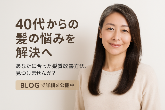 40代になると、加齢による水分量の低下や頭皮環境の変化で、まとまりにくい状態になりやすくなります。これは一般的な変化であり、特別なトラブルではありません。